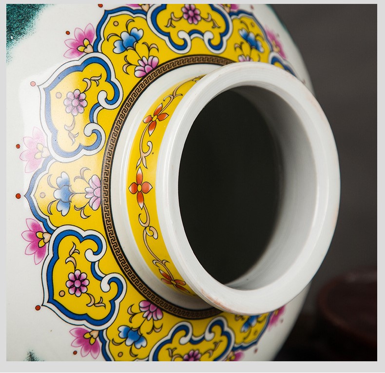 Kỹ thuật chế tác bình được thực hiện tại Cảnh Đức Trấn – Giang Tây, nơi những người thợ thủ công vẫn duy trì quy trình truyền thống kết hợp cùng kỹ thuật nung hiện đại. Gốm được tạo từ cao lanh tinh tuyển, nung ở nhiệt độ cao giúp bình có độ bền chắc, trơ hoàn toàn với rượu và đảm bảo an toàn trong quá trình lưu trữ. Họa tiết được vẽ thủ công bằng màu men cao cấp, cho màu sắc tươi sáng, bền màu và sắc nét. Sự phối hợp giữa nghệ thuật hội họa, kỹ thuật gốm sứ và văn hóa Á Đông tạo nên một sản phẩm mang giá trị thẩm mỹ cao, xứng đáng trưng bày như một món đồ phong thủy tinh xảo.