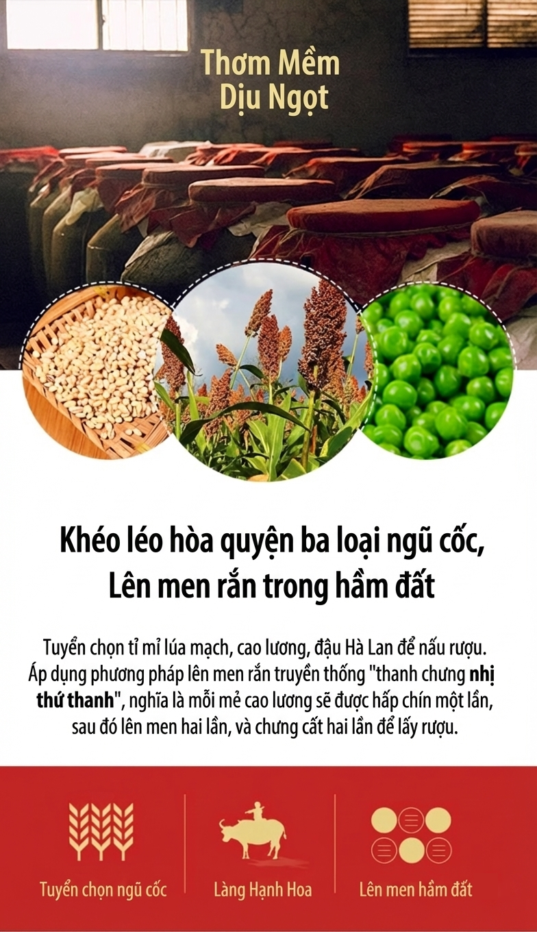 Nguyên liệu 100% ngũ cốc: Kết hợp tỷ lệ vàng giữa Cao lương, Đại mạch và Đậu Hà Lan cùng nguồn nước tinh khiết